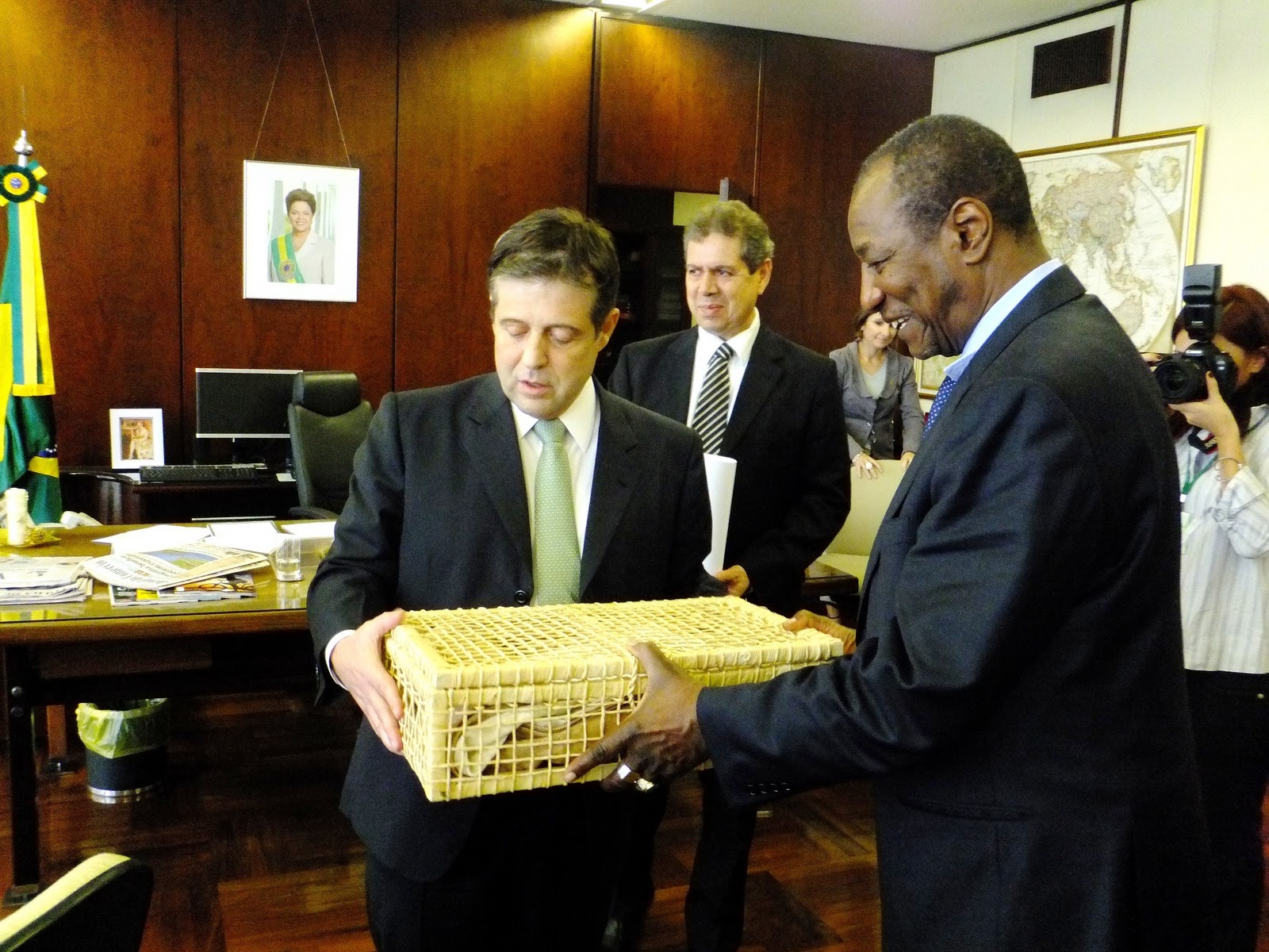 Pour Olivier Santana, initiatrice du jumelage Boké-Salvador, le choix de Boké n’est pas fortuit : « Boké, parce qu’il a été découvert dans la sous-préfecture de Mafreinya un port qui servait d’embarquement des esclaves pour l’Amérique latine. Alors les peuples guinéens, en un mot du continent noir, et brésiliens, se sont mélangés et nous formons aujourd’hui un même peuple ici. Pour cela la rupture est impossible avec l’Afrique. »Des cadeaux, il y en eu, pour renforcer les relations d’amitié entre les deux Etats. Pr. Alpha CONDE a offert une statue symbolisant le mont Nimba au vice-préfet de la ville de Salvador. En retour, Edvaldo Brito a aussi offert au Chef de l’Etat cet instrument de musique appelé en portugais Bibinbao.